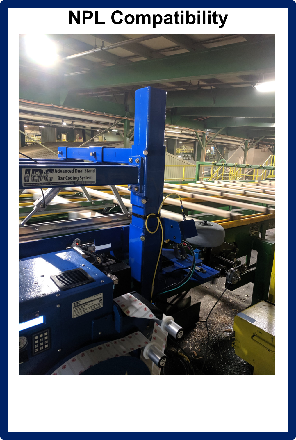 The IBC PA10G Advanced Stand provides customizable mounting solutions for the IBC PA10G Label Printer Applicator for all wood products manufacturers. Designed for maximum scalability, and purpose built for mill environments, the IBC PA10G Advanced Stand allows for multi-product labeling capabilities across multiple product thicknesses with integratable components for a consolidated bar coding, labeling, and inkjet solution. Whether you’re looking to mount a single IBC PA10G Printer Applicator with verification for top apply onto plywood, OSB, MDF, and EWP or looking for a side mounted Dual Printer Applicator Non-Production Loss (NPL) environment with hot-melt glue, inkjet system integration, and live real time verification with label finishing, the IBC PA10G Advanced Stand gives you maximum flexibility to ensure your products are bar coded, labeled, tracked and ready for retail.