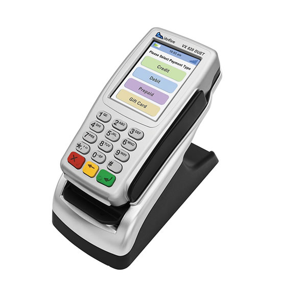 Contact usThe VX 820 DUET is a dual-user, feature-rich countertop solution with design and functionality that meets merchants’ and consumers’ needs. Merchants appreciate getting what they need in one device – great functionality with consumer ease of use. Merchants can quickly and securely accept multiple forms of payment - from credit, debit and EMV to NFC/contactless.